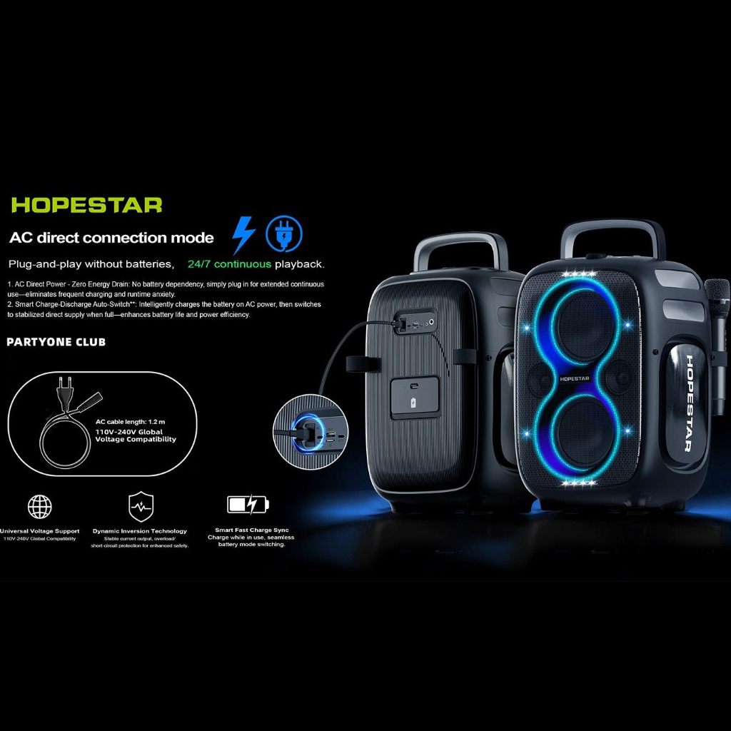 بلوتوث 5.4 | ورودیهای AUX، USB، کارت حافظه (TF)، ورود گیتار/میکروفون (6.35mm)